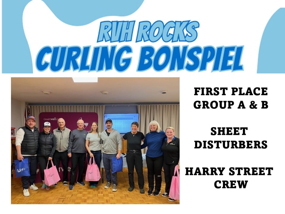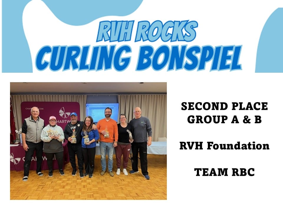 Yes, our very own RVH Foundation team took home SECOND PLACE thanks to the incredible curling skills of RVH Foundation Team member Brenda Gilchrist and her team: Jim, Torsten and Sonya.  We were very excited about that outcome!