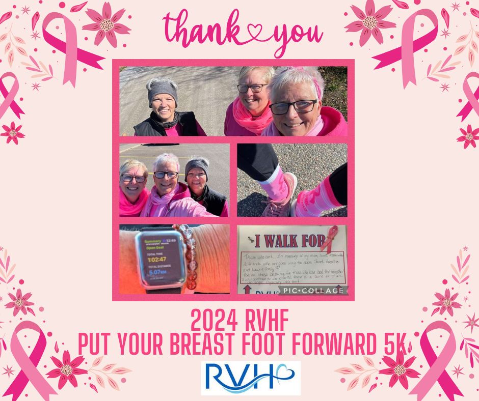 The RVH Foundation’s PUT YOUR BREAST FOOT FORWARD 5km Walk/Run takes place annually during the month of October to recognize Breast Cancer Awareness Month.